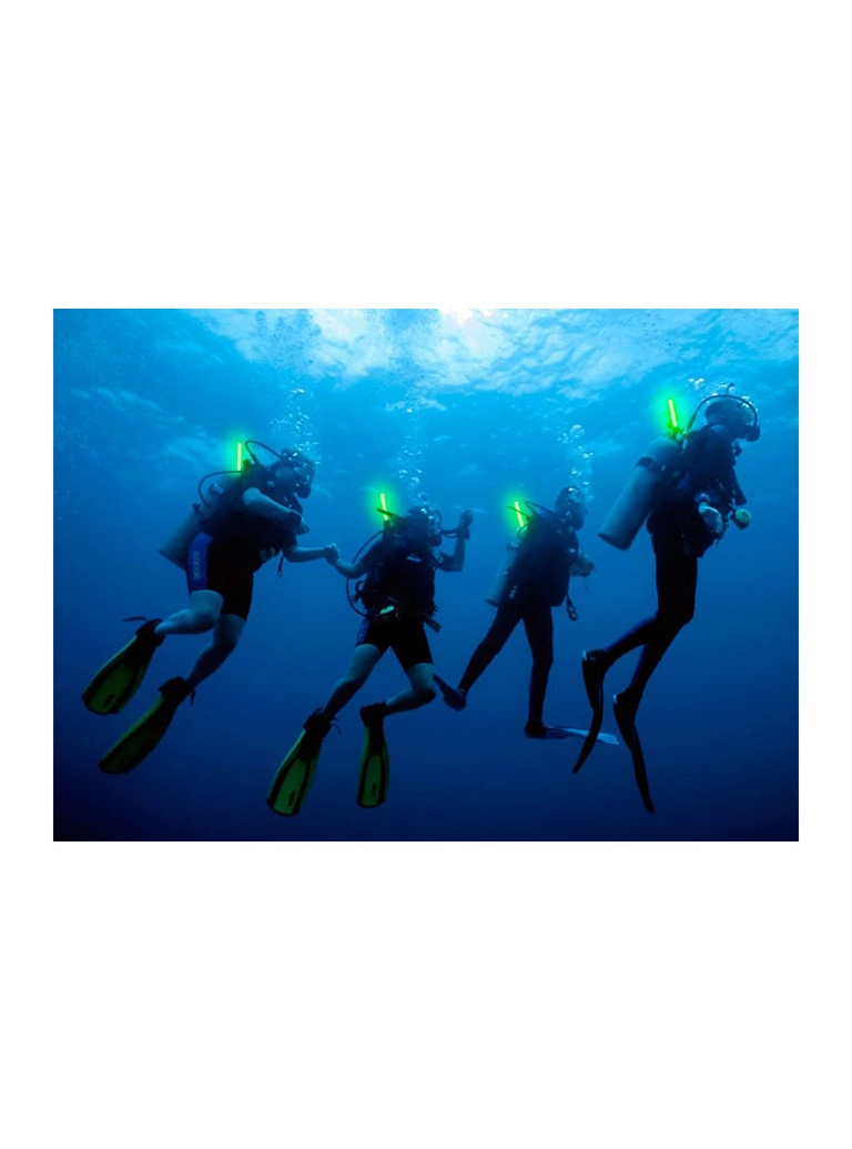 Πακέτο 10 φωσφοριζέ χημικών πράσινων ραβδών (15εκ) της CYALUME διάρκειας 12 ωρών, που είναι ατομικά συσκευασμένες για προστασία από το φως και την υγρασία και έχουν διάρκεια ζωής έως και πέντε χρόνια από την ημερομηνία κατασκευής.