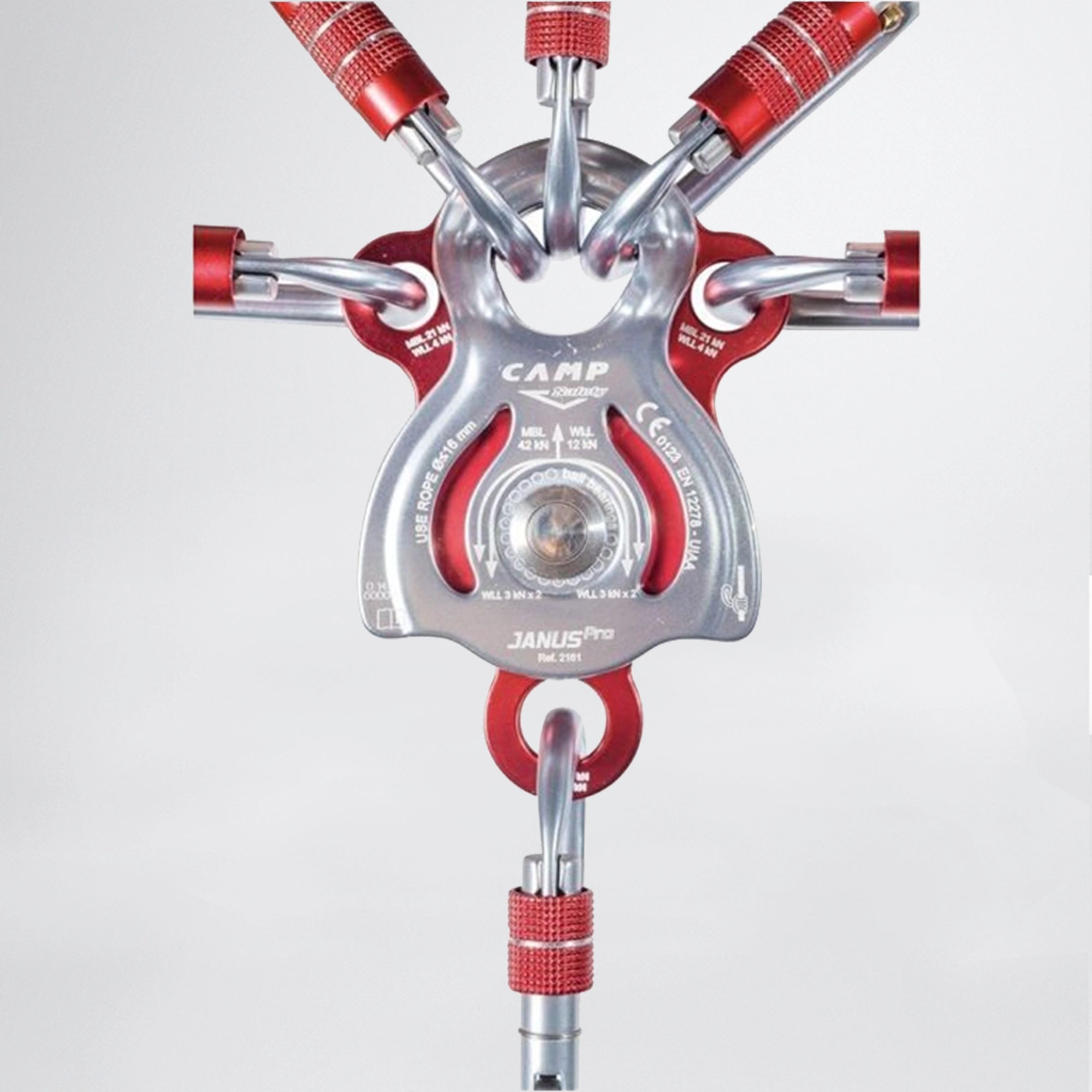 Η τροχαλία JANUS (2160) της Camp Safety είναι διπλή και πολυλειτουργική με υψηλή αντοχή για συστήματα μπλοκαρίσματος και σύνθετων λειτουργιών.Διαθέτει μεγάλους τροχούς, ένα κύριο σημείο στερέωσης που μπορεί να φιλοξενήσει τρεις καραμπίνερ, και ένα μεγάλο μπεκ με ένα μεγάλο σημείο προσάρτησης κάτω και δύο δευτερεύοντα σημεία σύνδεσης στις πλευρές. Είναι ιδανικό για χρήση με σχοινιά έως 16 mm και ο αυτο-κλειδωμένος κόμβος μπορεί να εγκατασταθεί και στις δυο πλευρές.