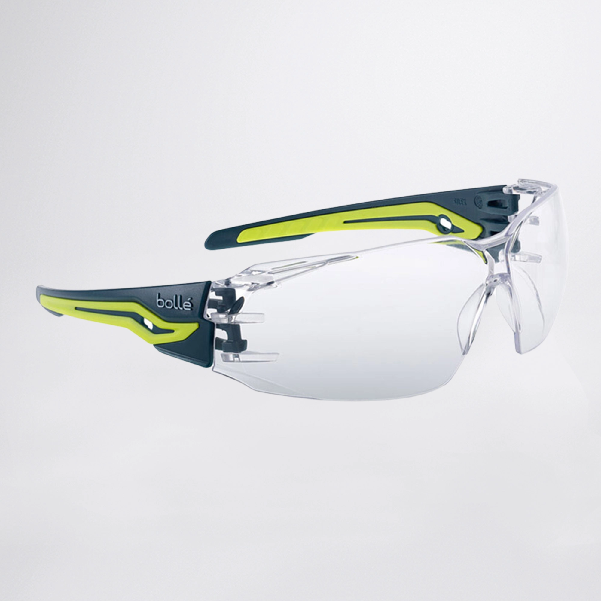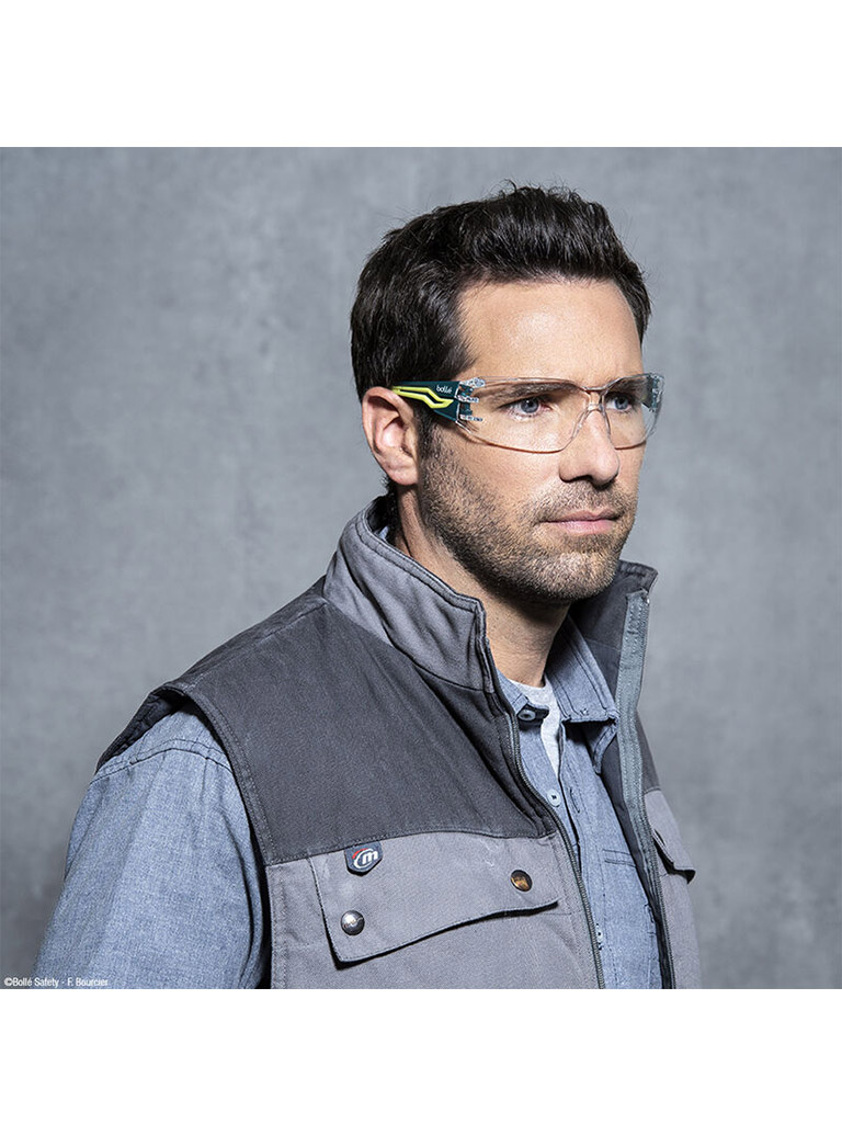Η τεχνολογία FLEX 160° που χρησιμοποιείται για την κατασκευή του μοντέλου Silex+ της κορυφαίας Γαλλικής εταιρείας Bolle Safety, εξασφαλίζει την τέλεια εφαρμογή σε κάθε πρόσωπο. Είναι εξοπλισμένο με την αποκλειστική επίστρωση PLATINUM για μακροχρόνια αντιθαμβωτική και αντιχαρακτική προστασία. Οι εύκαμπτοι βραχίονες προσφέρουν στον χρήστη την απόλυτη στήριξη χωρίς σημεία πίεσης. Το SILEX+ διαθέτει πανοραμική όραση και αυξημένη προστασία λόγω μεγάλης επιφάνειας του φακού. Χωρίς συμβιβασμούς στις επιδόσεις, την άνεση, το στυλ και την προσιτή τιμή, το SILEX είναι κατάλληλο για όλους τους κλάδους: κατασκευή, αυτοκινητοβιομηχανία, εξόρυξη, γραμμή παραγωγής. Ο εκλεπτυσμένος σχεδιασμός και οι έγχρωμοι βραχίονες φέρουν την μοναδική υπογραφή της Bolle Safety. Οι διαφανείς φακοί Bolle Safety παρέχουν 90% μετάδοση φωτός.