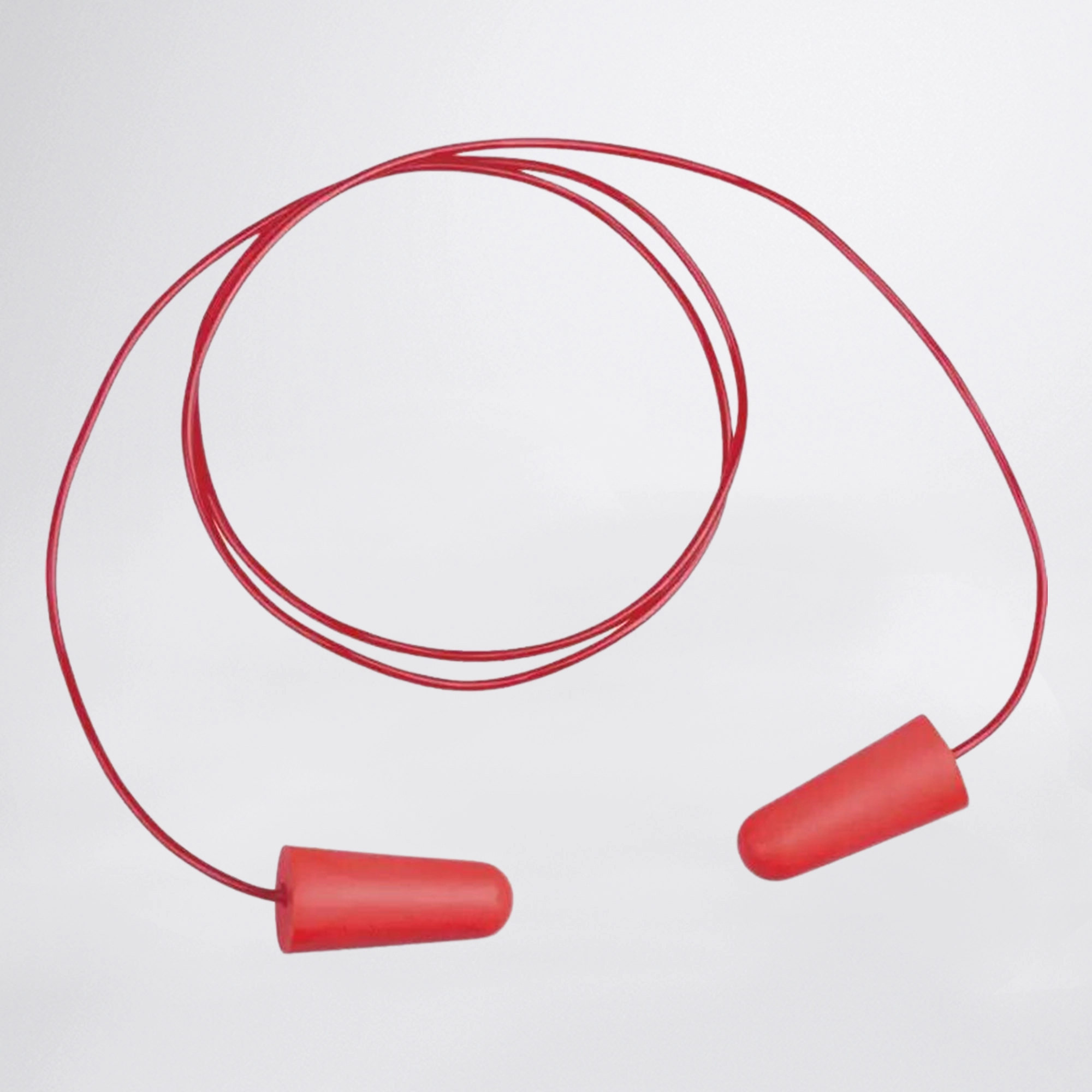 Ωτοασπίδες πολυουρεθάνης μίας χρήσης, με πλαστικό κορδόνι. Ατομικό πλαστικό σακουλάκι με 2 ωτοασπίδες.