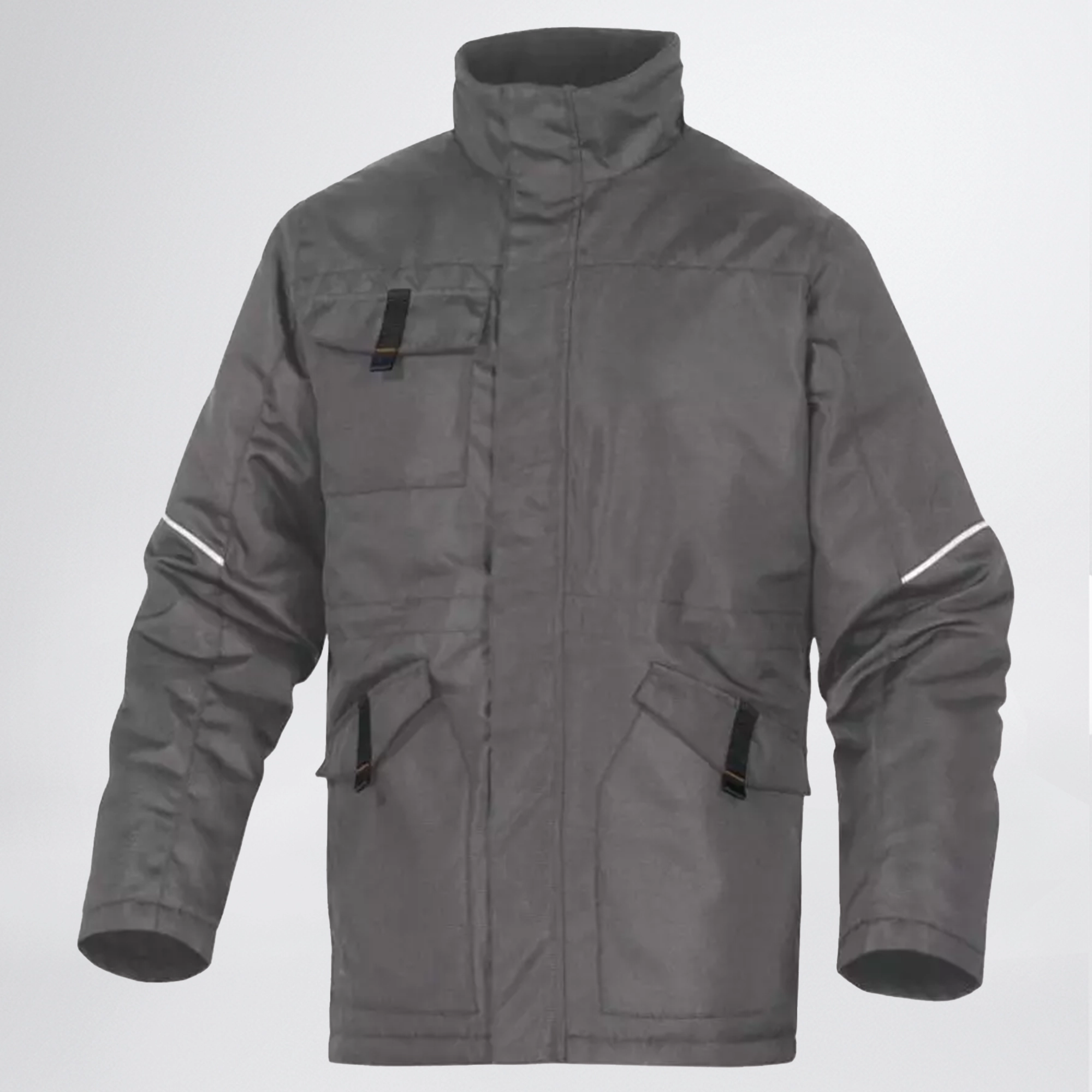 To DELTA PLUS CARSON παρκά είναι κατασκευασμένο από πολυουρεθάνη, ύφασμα OXFORD πολυεστέρα και επένδυση από πολυεστέρα καπιτονέ Taffeta. Προσφέρει ρυθμιζόμενη μέση με κορδόνι περίσφιξης, φερμουάρ κάτω από velcro , 5 τσέπες για μεγάλο όγκο αποθήκευσης και αποσπώμενη κουκούλα. Το CARSON παρκά έχει επίσης αδιάβροχες ραφές, και είναι ιδανικό για το κρύο λόγω του περιλαίμιου από φλις και των ισοθερμικών μανικιών.