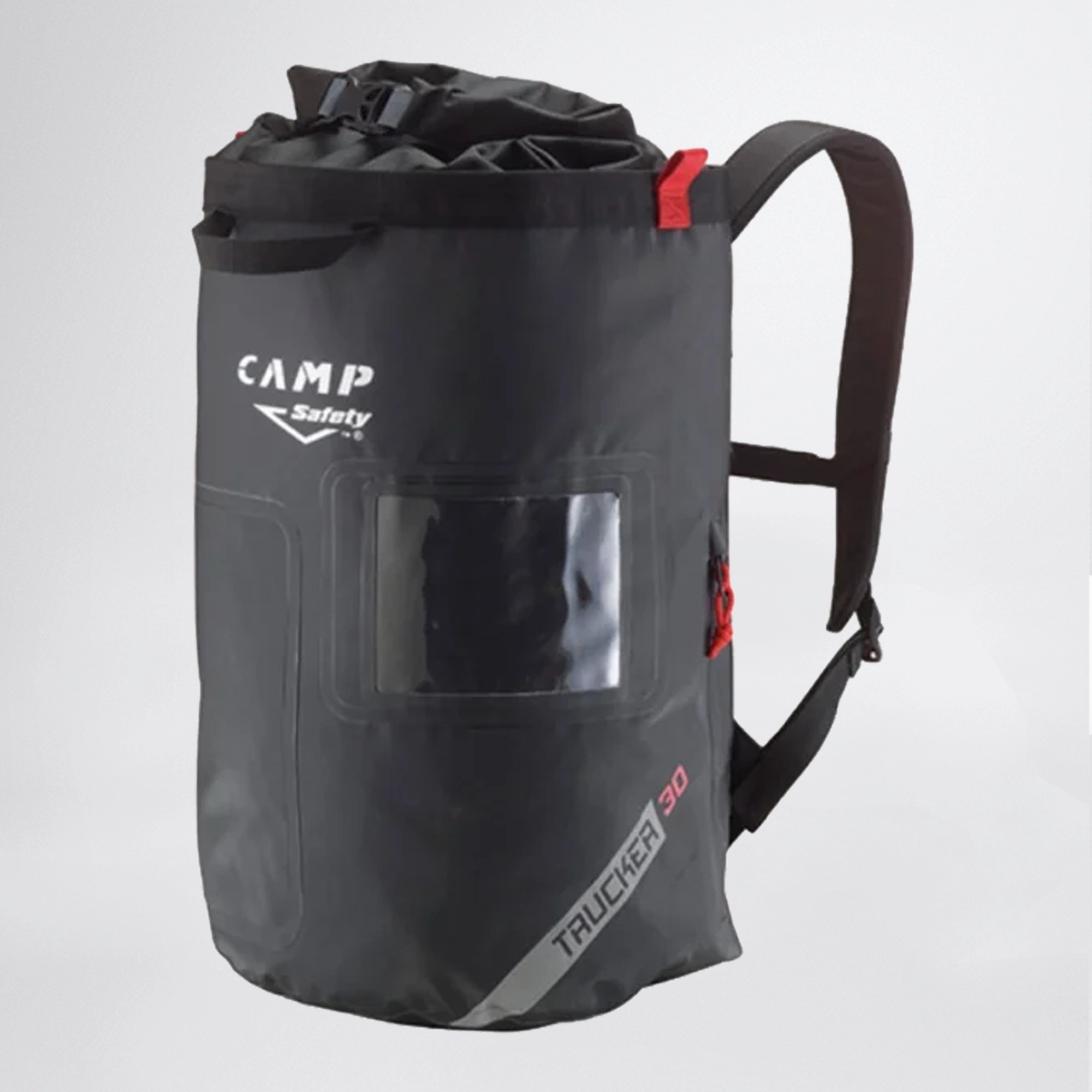 Το σακίδιο με roll top διαθέτει μία εξωτερική τσέπη με φερμουάρ και ένα εξωτερικό άνοιγμα με φερμουάρ επιτρέπει την πρόσβαση στο κάτω μισό του κύριου διαμερίσματος και μία εσωτερική τσέπη με φερμουάρ, θηλιές γραναζιών και θηλιές για τη στερέωση των άκρων των σχοινιών.